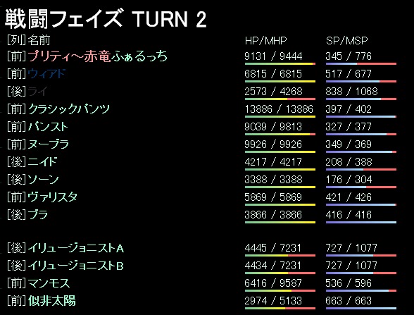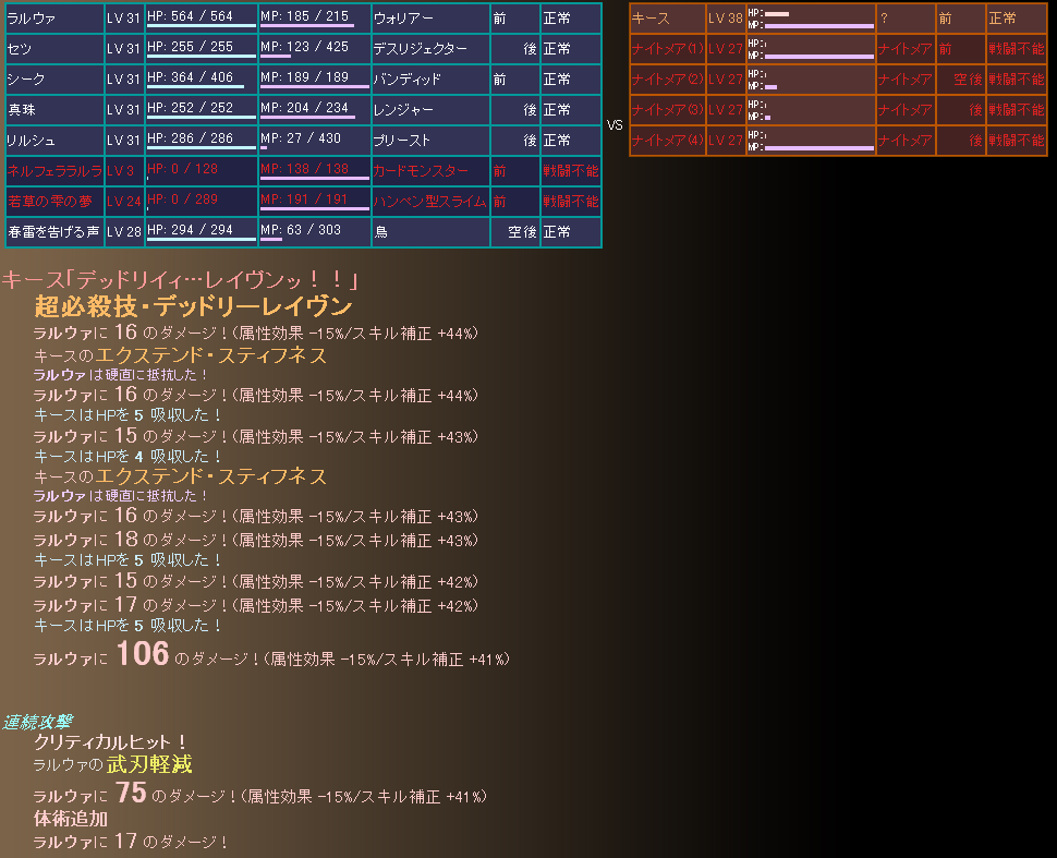 もう、ラルが後ろ下がって、シークと栞だけで前線だったのには大笑いしましたけどね。