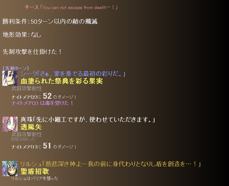 …でもね、設定ミスで大分術会で不屈の決意のような再復活には大笑い。